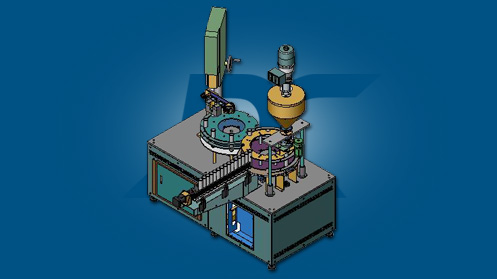 The water filter container of activated carbon can be automatically filled with activated carbon and automatically complete the sponge and lid automatic assembly, as well as the work of welding and fixing between the caps and the bottle.